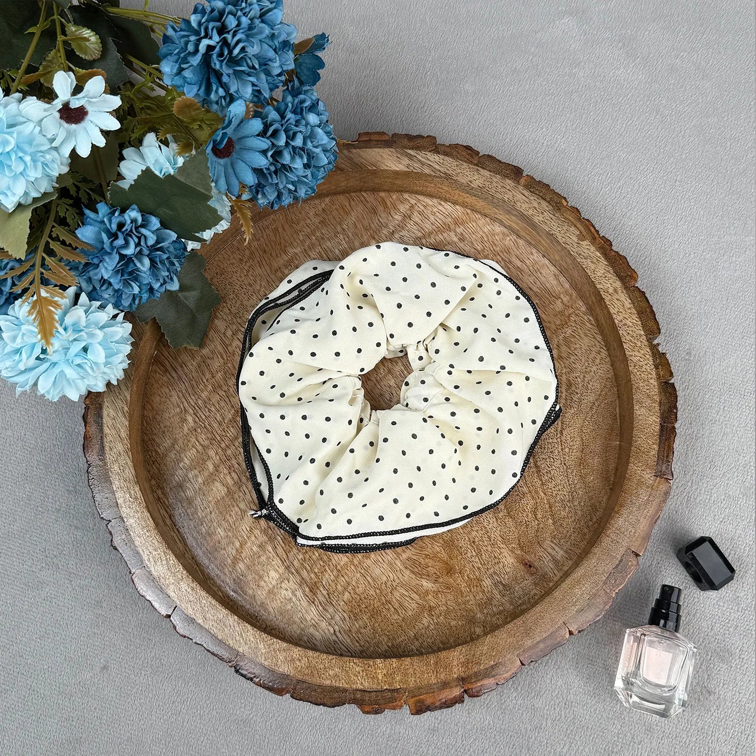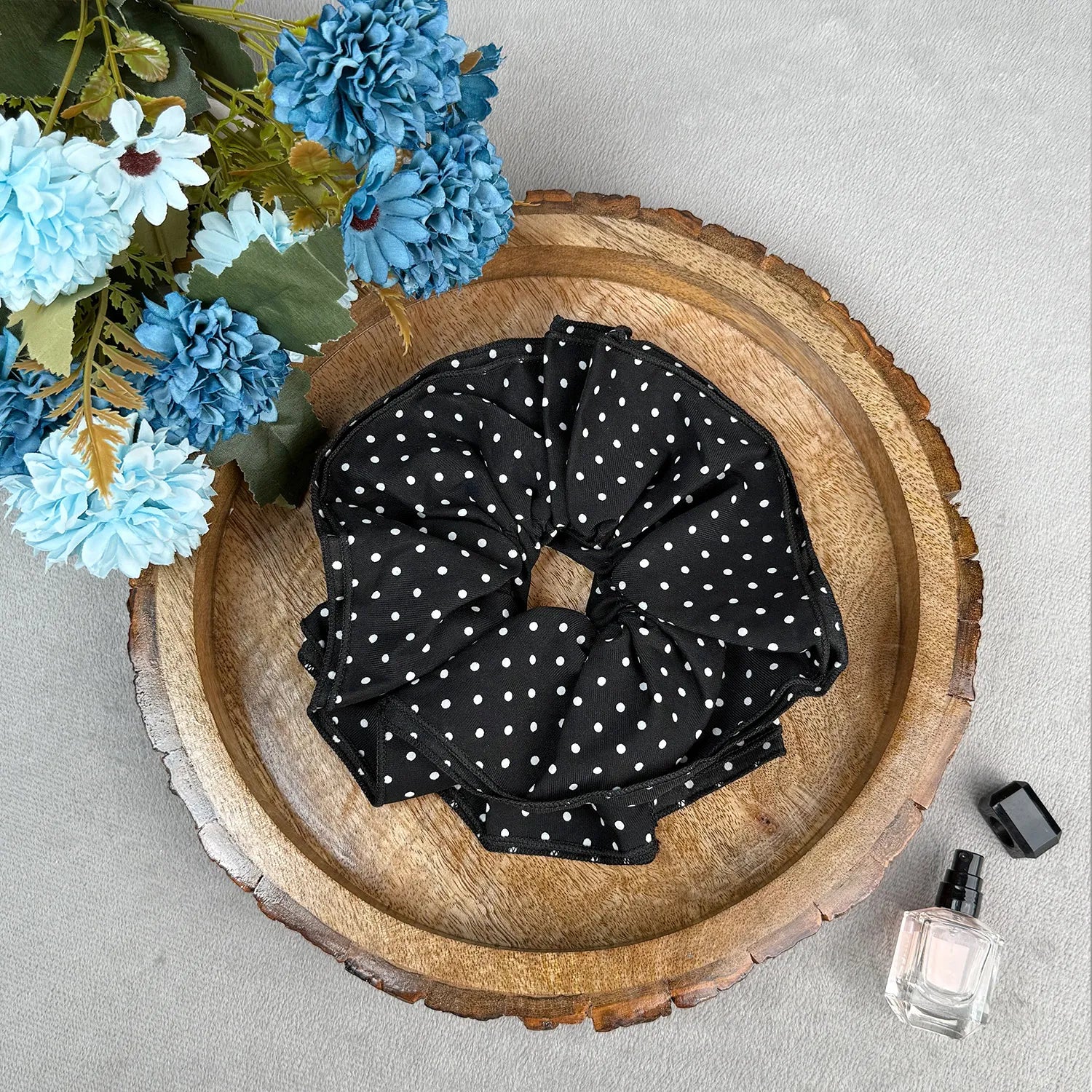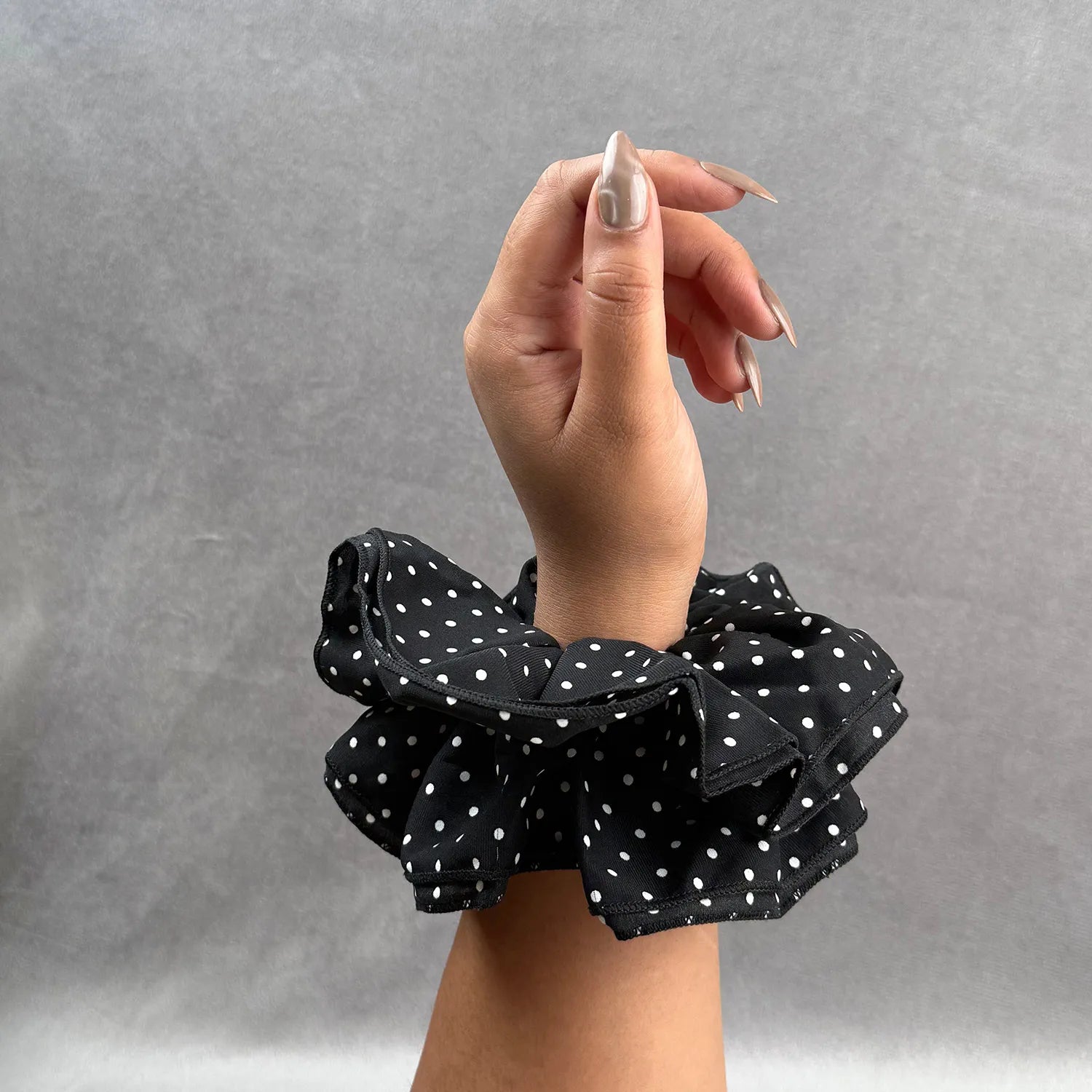 Playful and chic, this satin polka scrunchie adds ruffled charm to every look, easy to style for work, casual days, birthdays, and gifting.