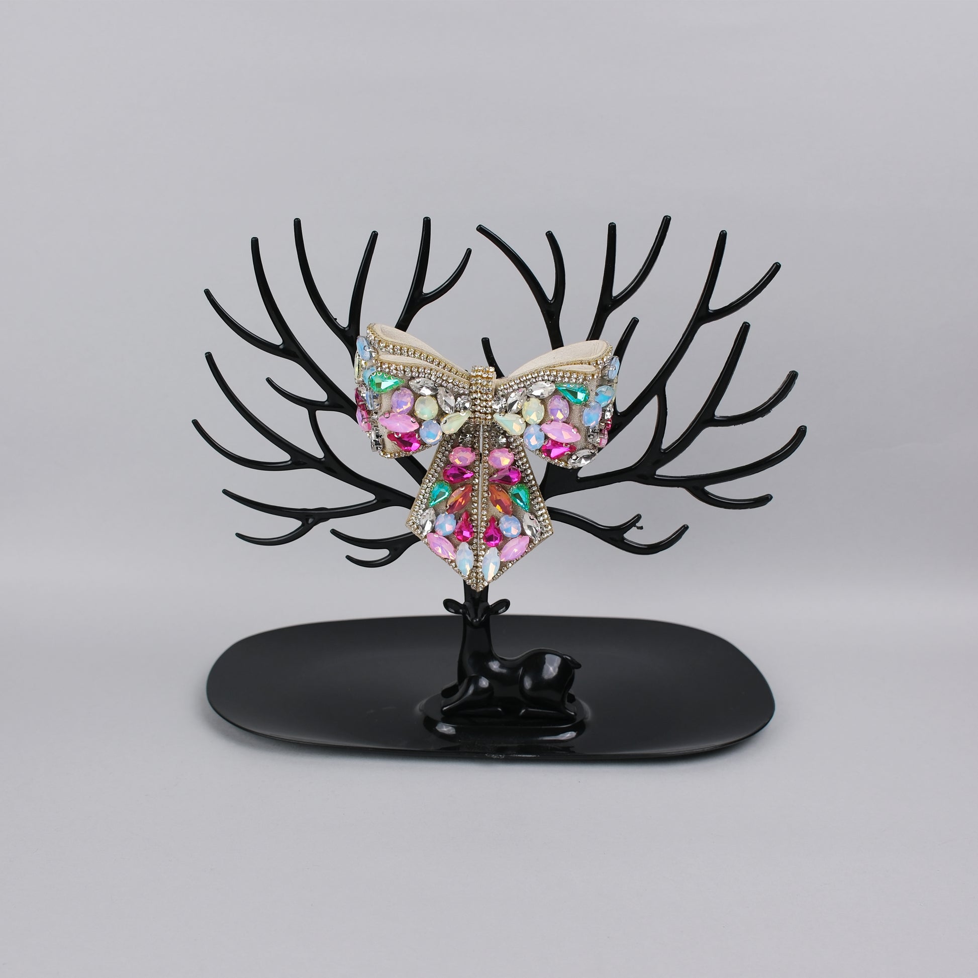 Crafted on a soft padded thick fabric base, this bow offers a plush, premium feel while keeping its structure refined. The padding adds gentle volume, allowing the multi-coloured stones to sit beautifully across the bow’s surface, creating a standout piece that feels both sturdy and luxurious.