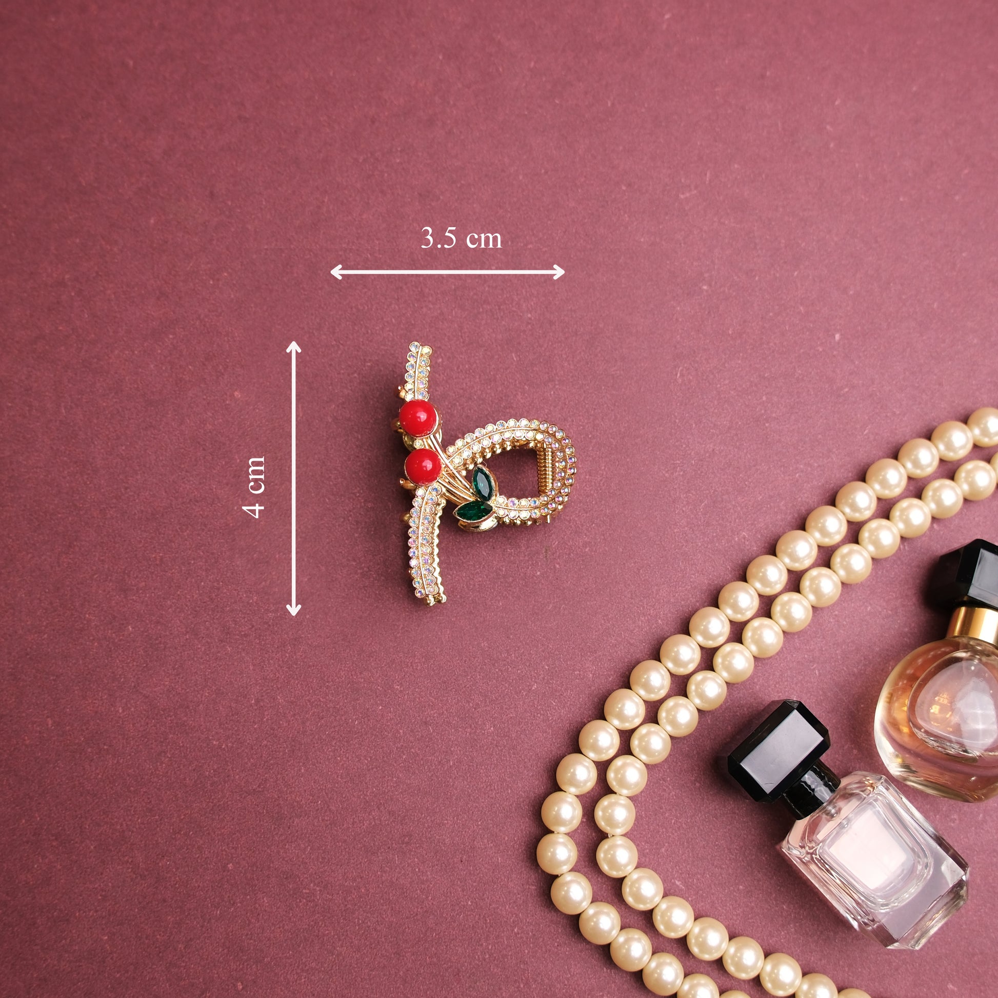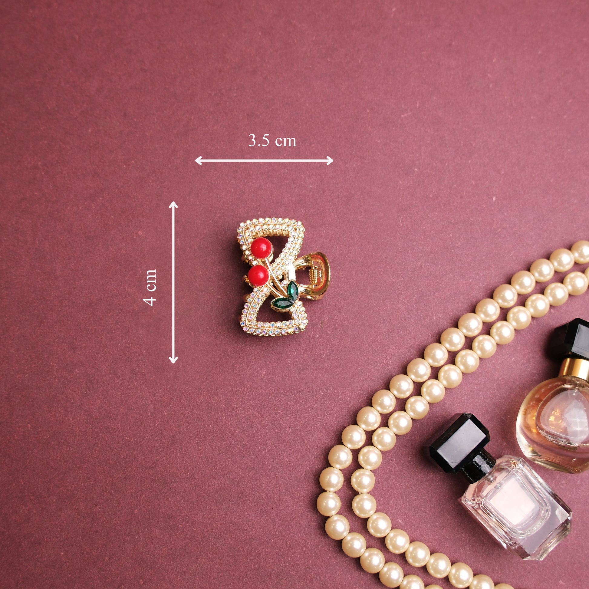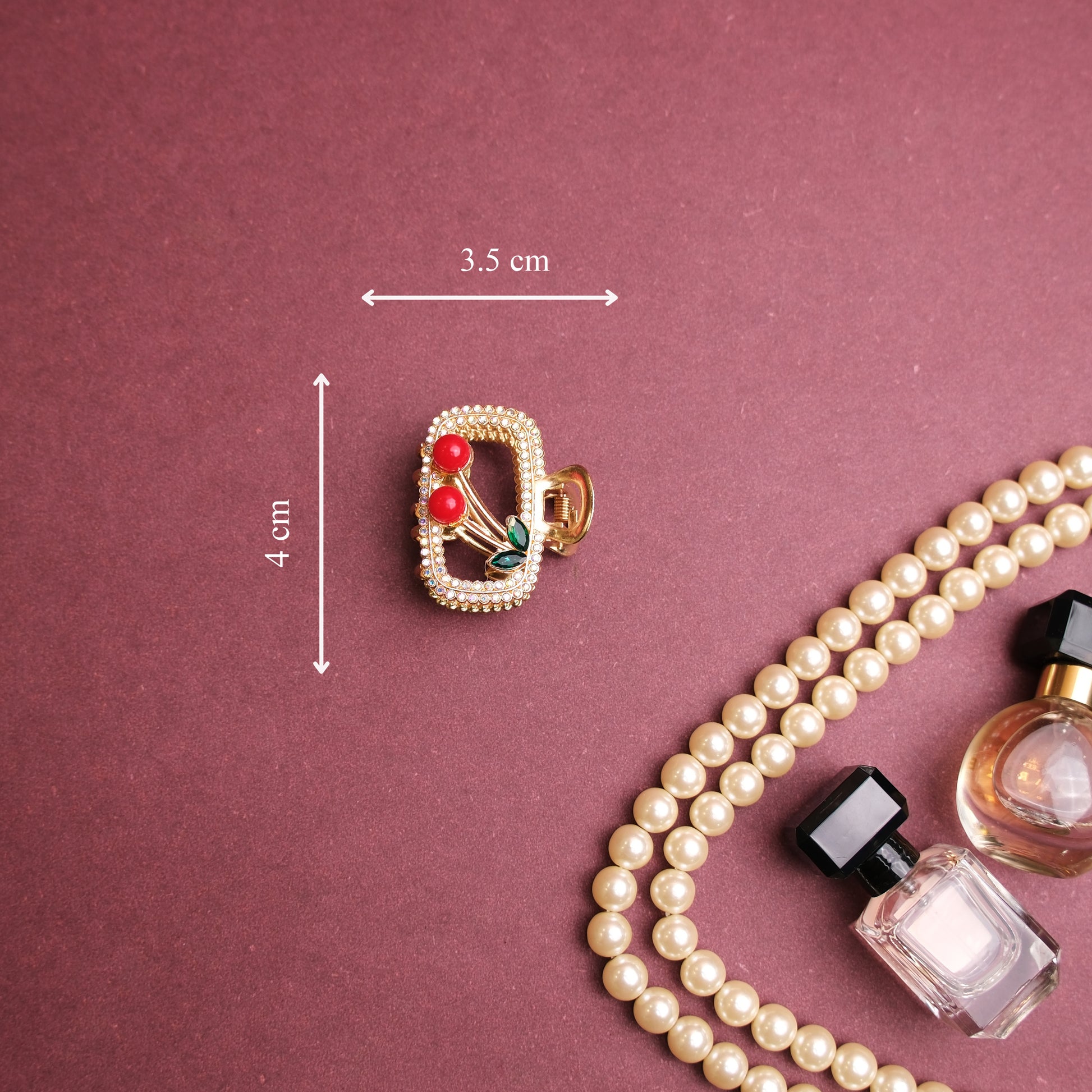 A festive favorite for Navratri and Diwali, this small golden metal hair claw clip with cherry stone and crystal accents makes every look radiant and gift-worthy.