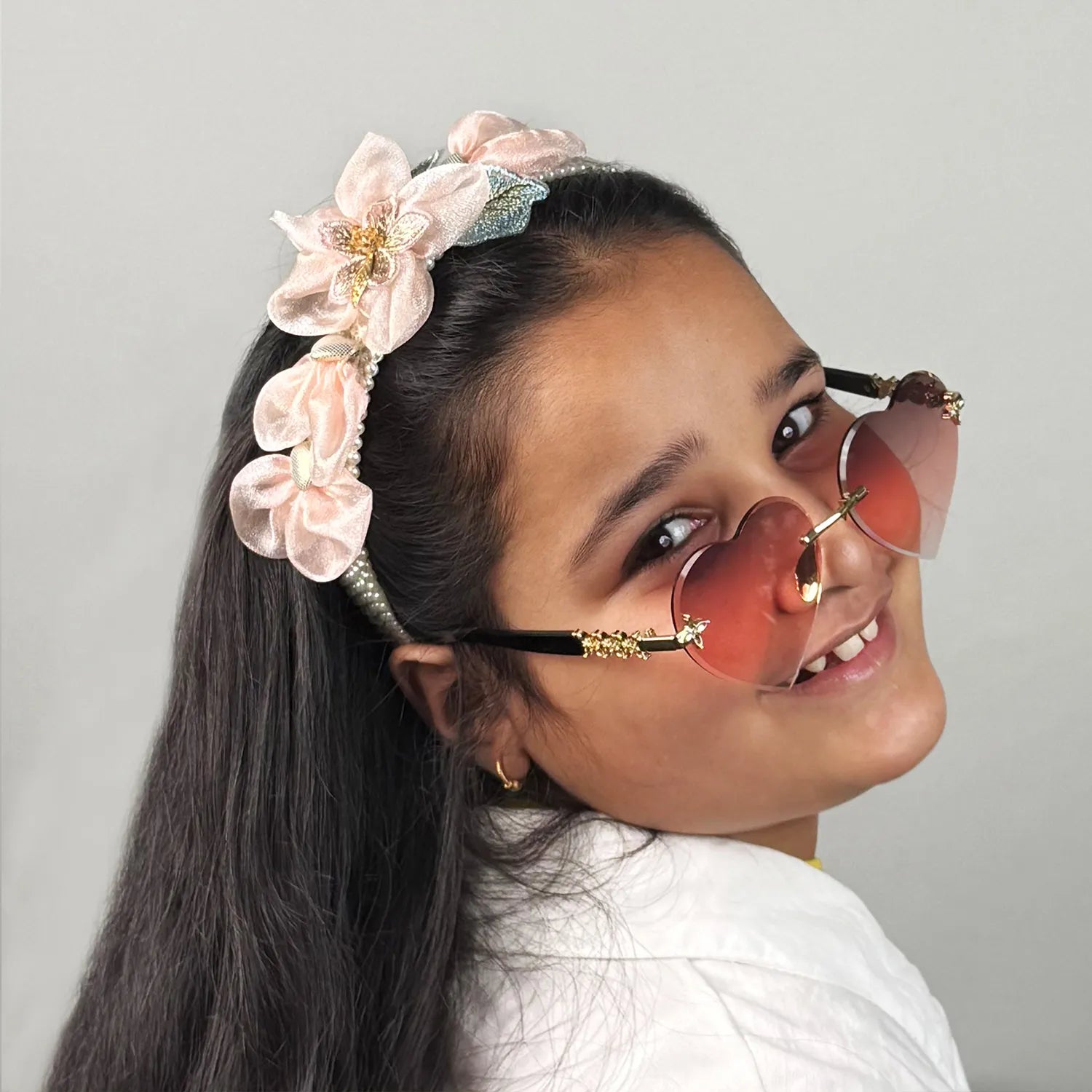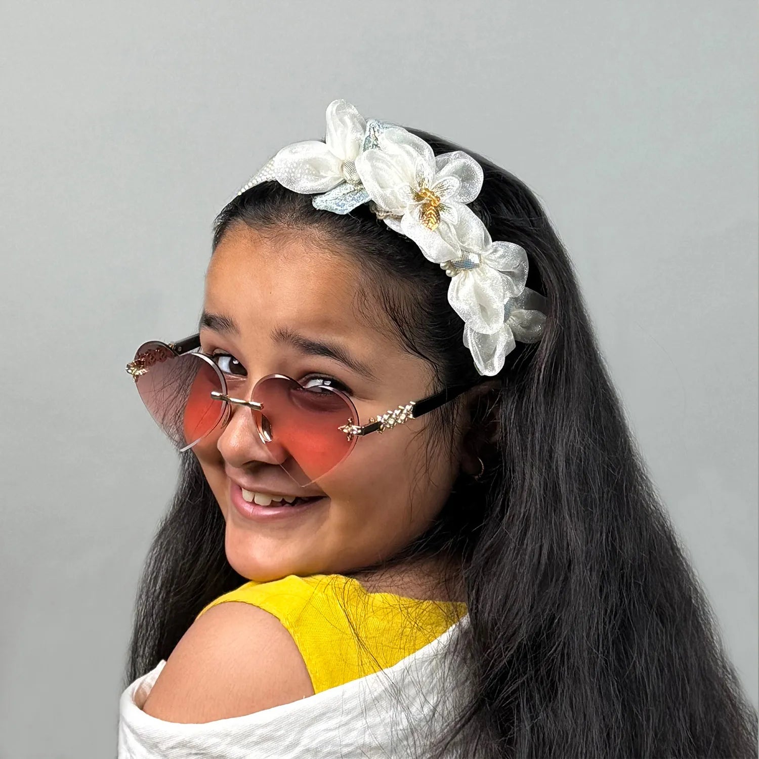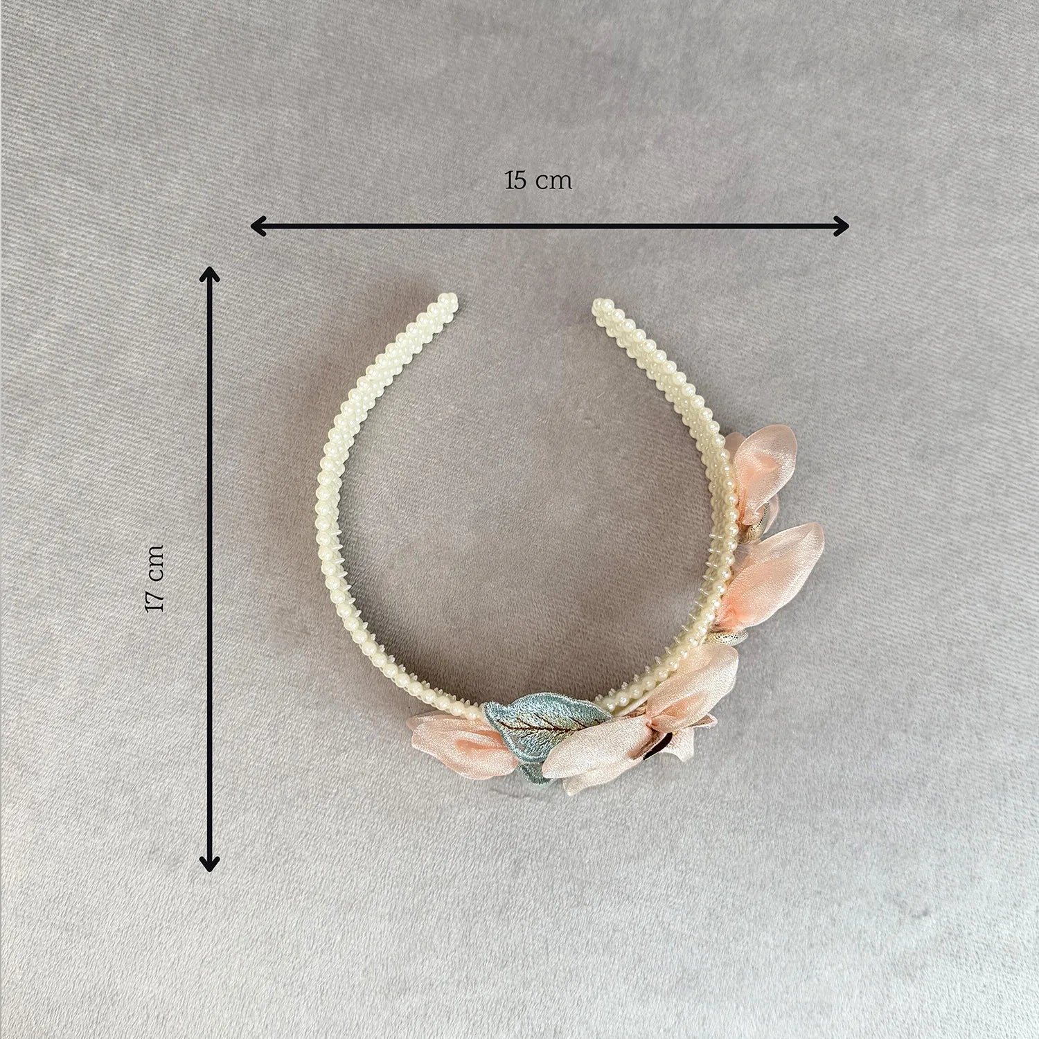 Inspired by timeless floral elegance, this fascinator hairband blends the shimmer of pearls with soft organza layers. The result is a graceful hair accessory that balances playfulness with sophistication, making it equally appealing for early school occasions, pre-teen parties, or teenage festive gatherings.