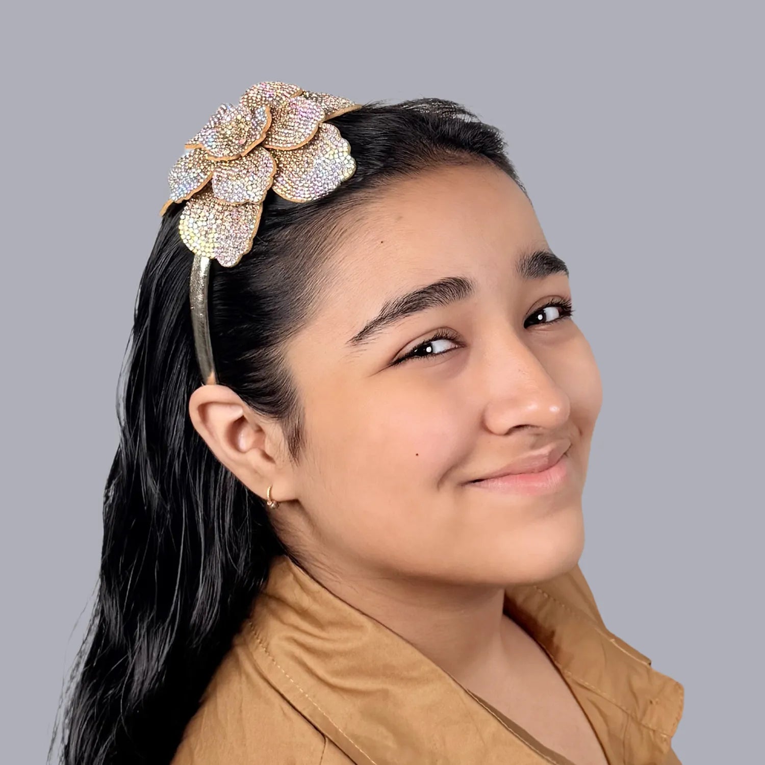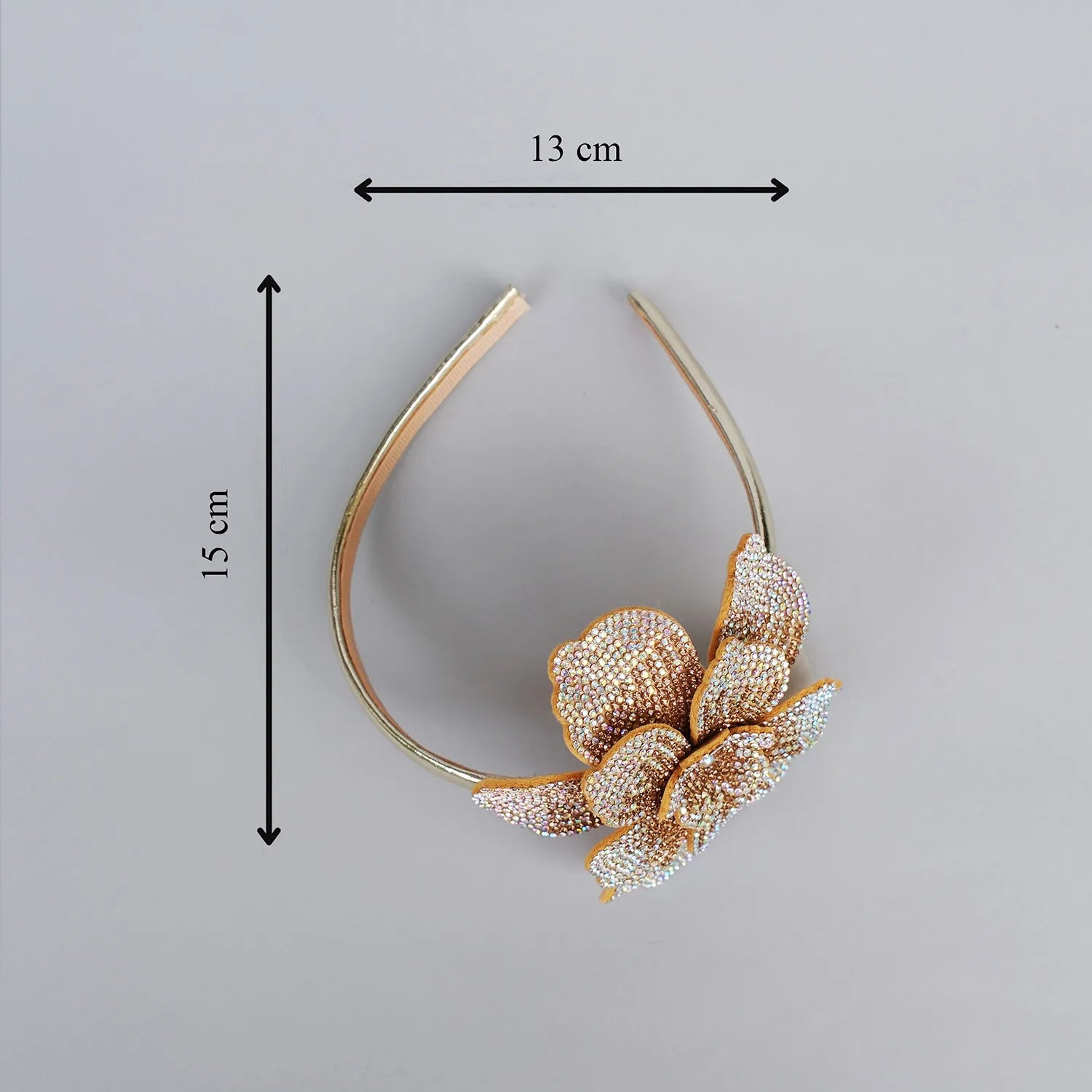 This flower hairband is individually handcrafted, where each rhinestone is carefully placed to reflect precision and artistry. Built on a premium non-combing soft base, it ensures durability and comfort, making it a true piece of premium beauty suitable for all hair types.