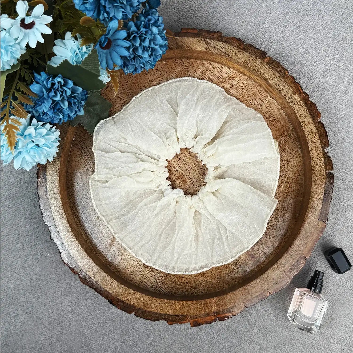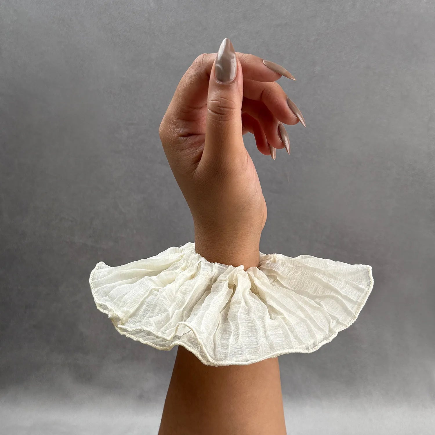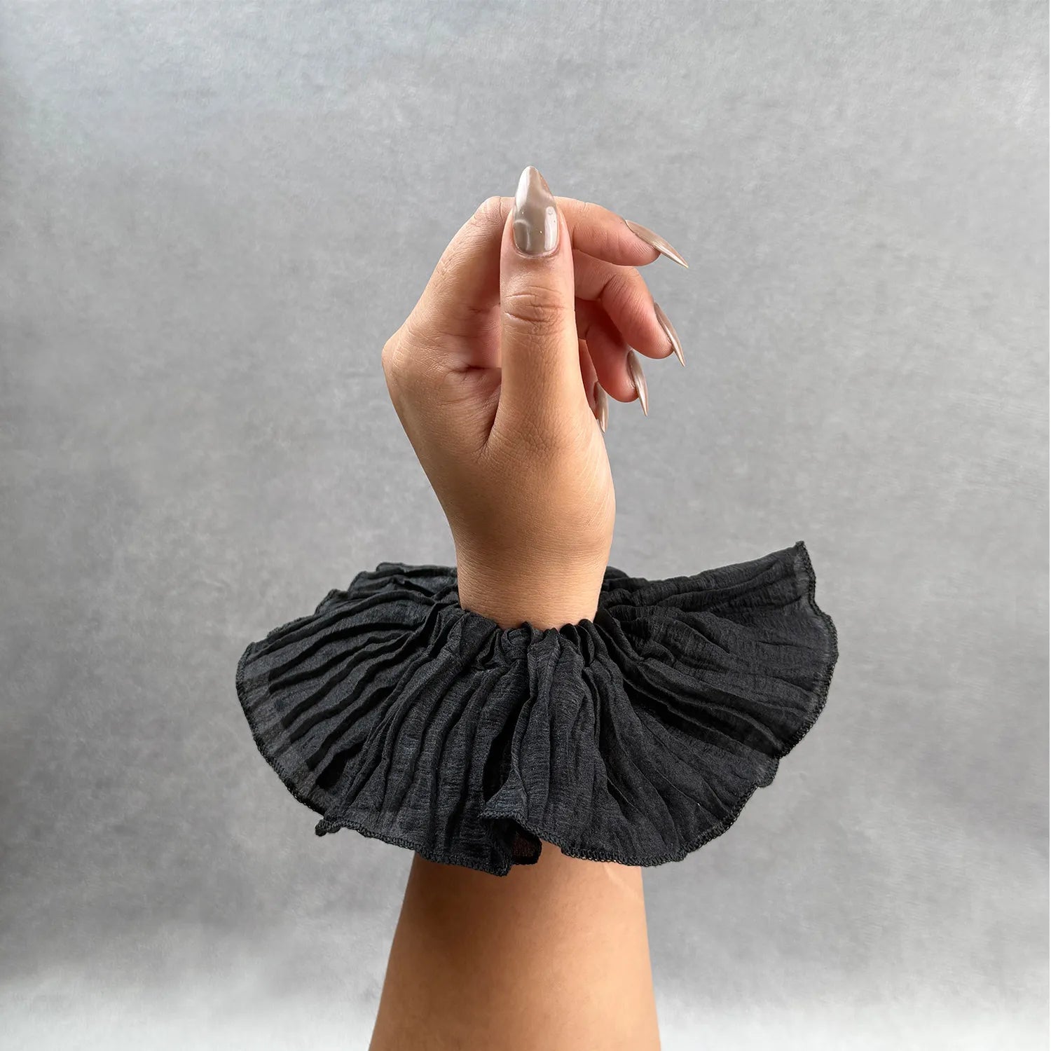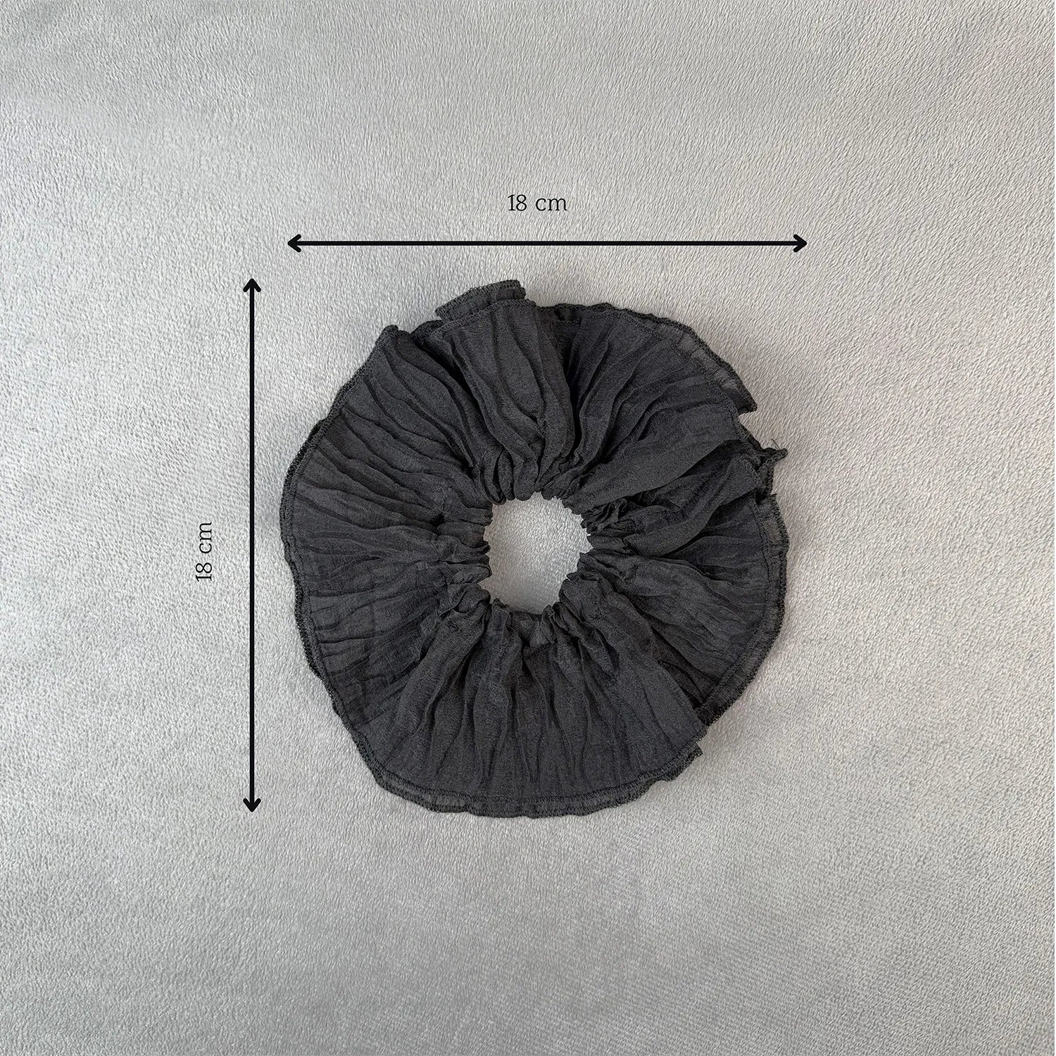 The plain cotton body forms generous ruffles that create volume and texture when wrapped around your ponytail. Its jumbo size makes it a statement piece, blending casual charm with an airy look that enhances even the simplest hairstyles.