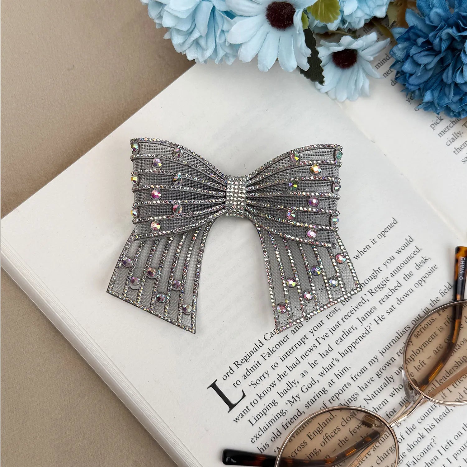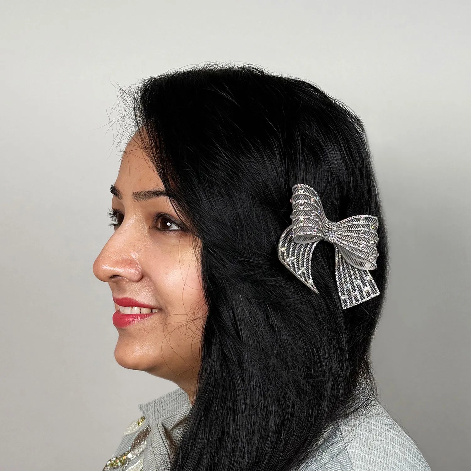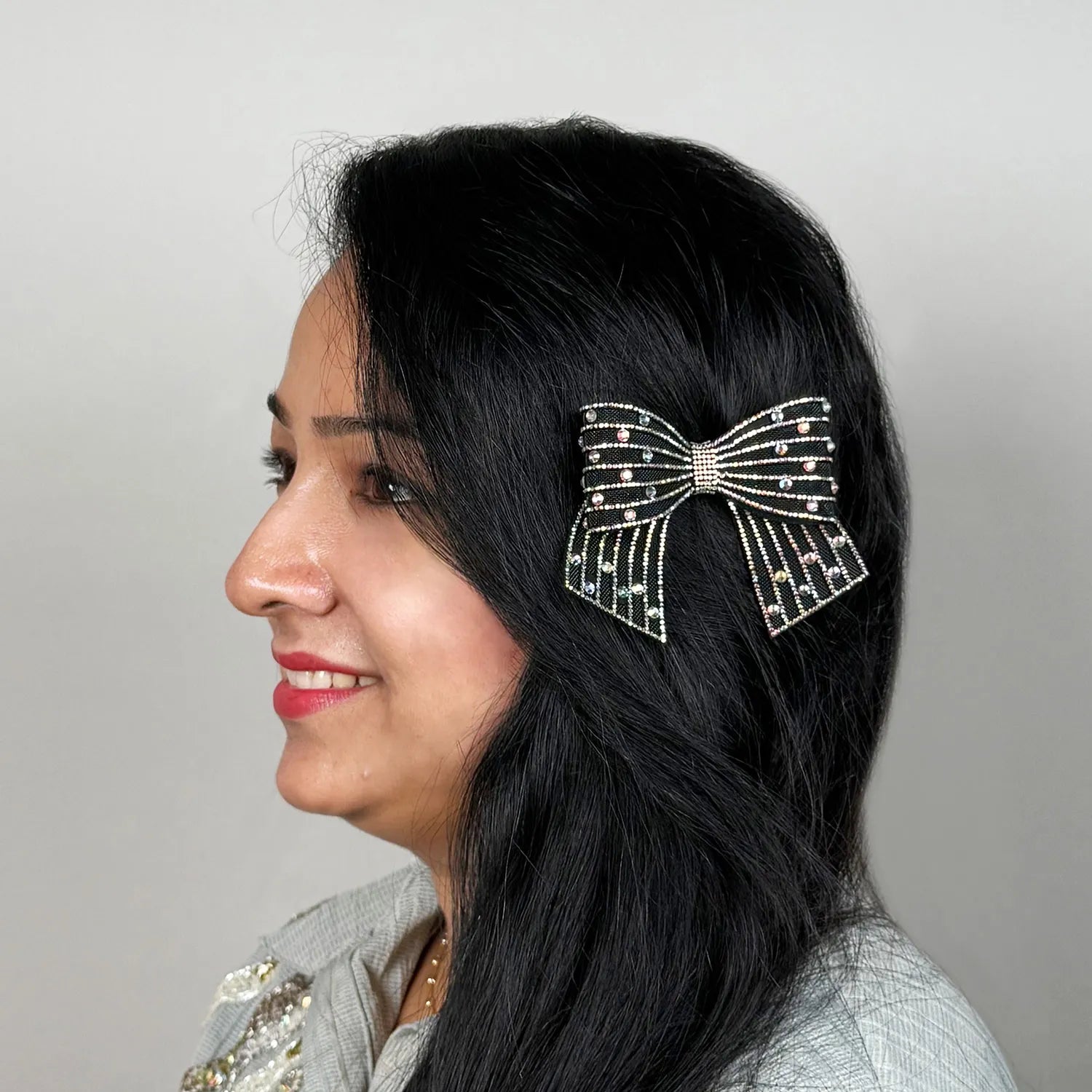 Drawing from festive glamour and timeless elegance, this hair bow clip combines a polished silhouette with sparkling accents. Inspired by designer accessories, its structured shape and radiant rhinestone shimmer make it ideal for women and teens seeking to add luxury to everyday hairstyles.